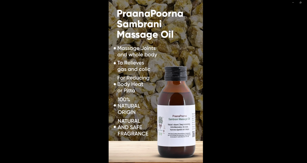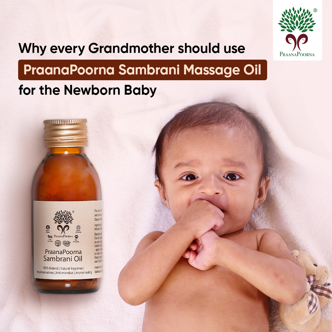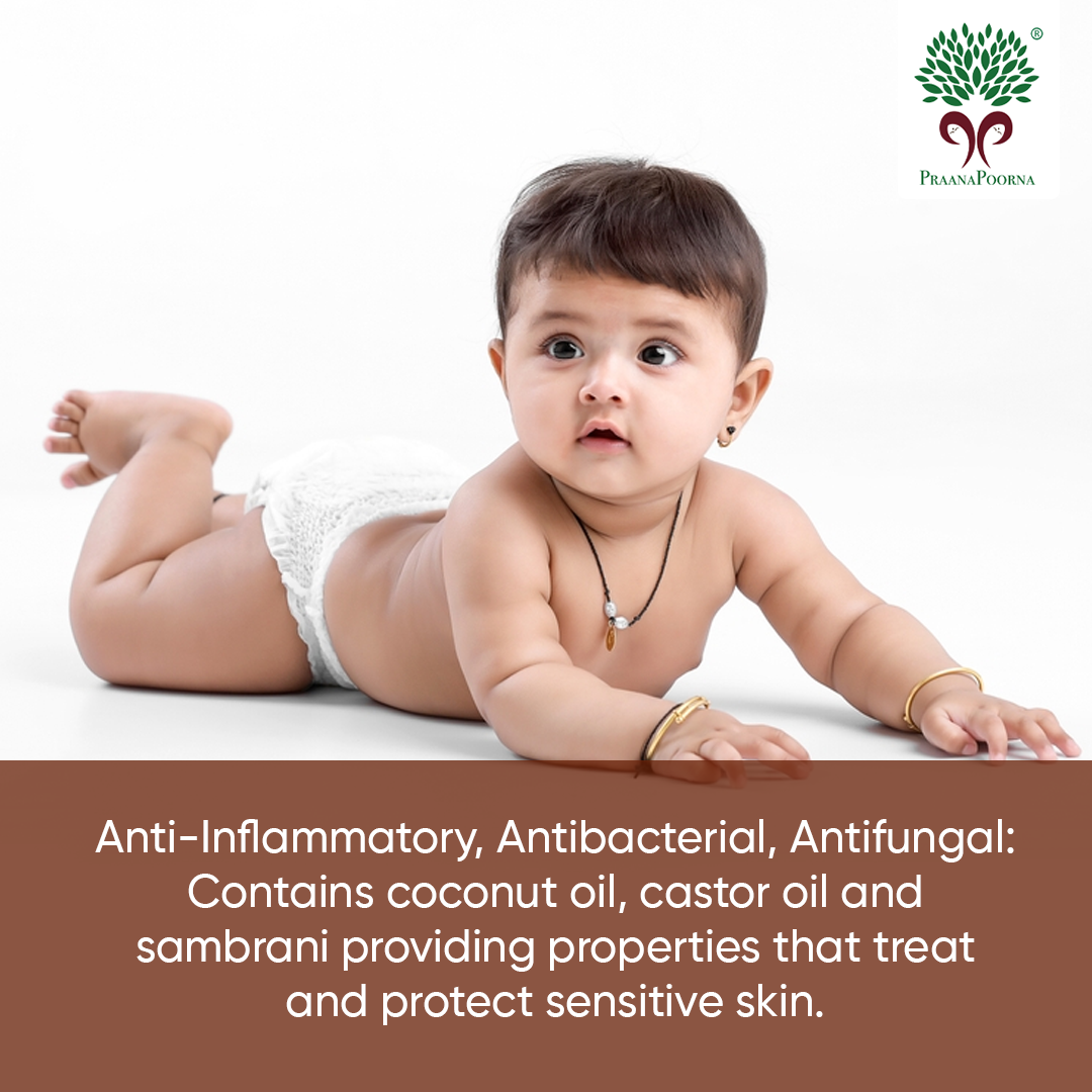 Handcrafted Sambrani massage oil offers deep hydration, gentle skin care, improved circulation, and relief from colic. Suitable for all ages – infants, kids, and adults.