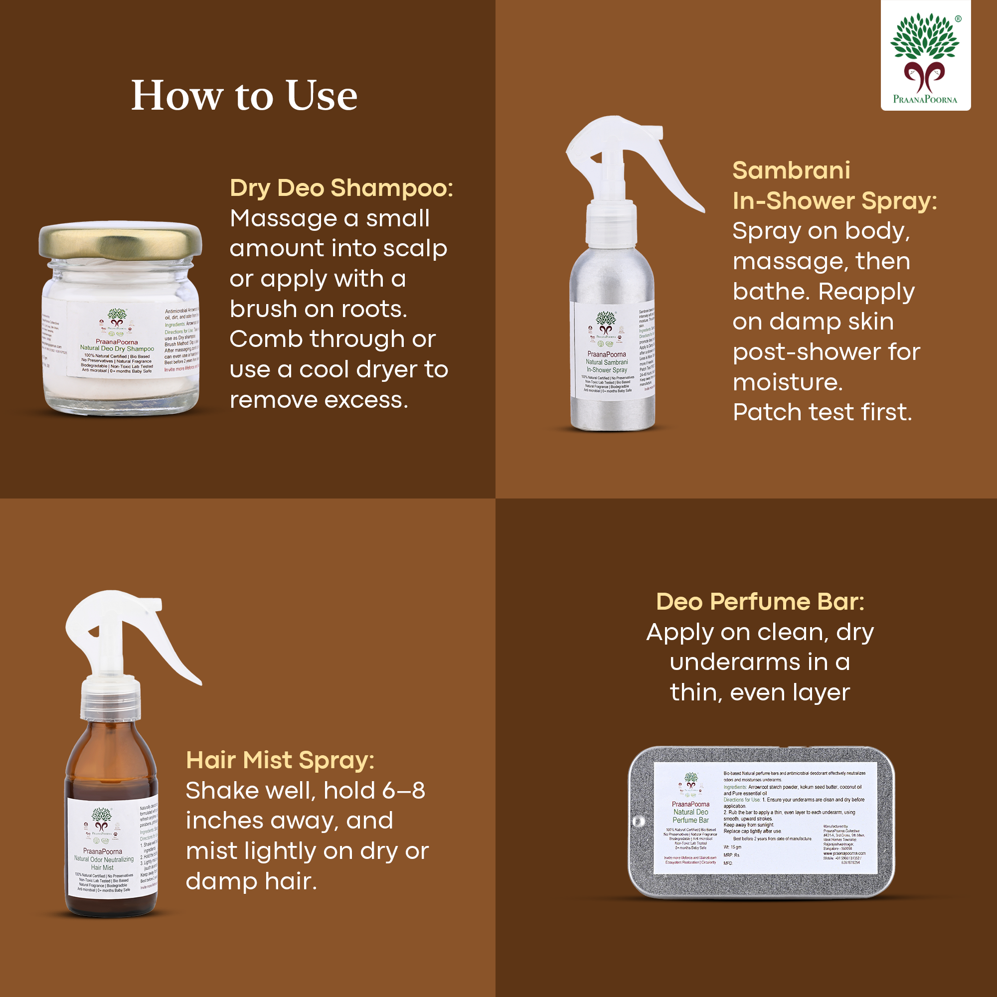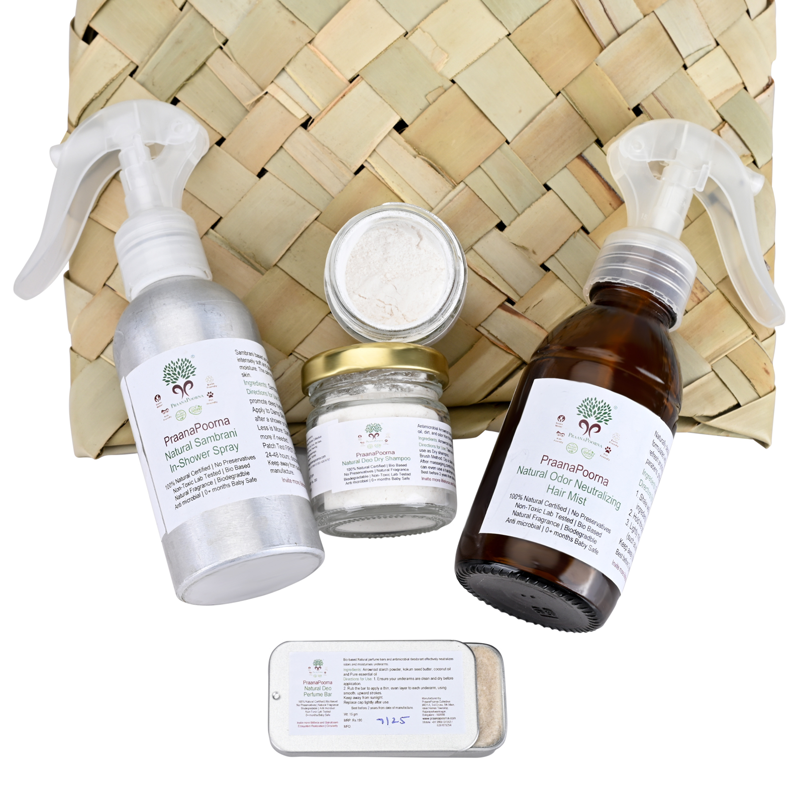 Natural Odor Neutralizing Hair Mist + Natural Deo Dry Shampoo + Natural Deo Perfume Bar + Natural Sambrani In-Shower Spray