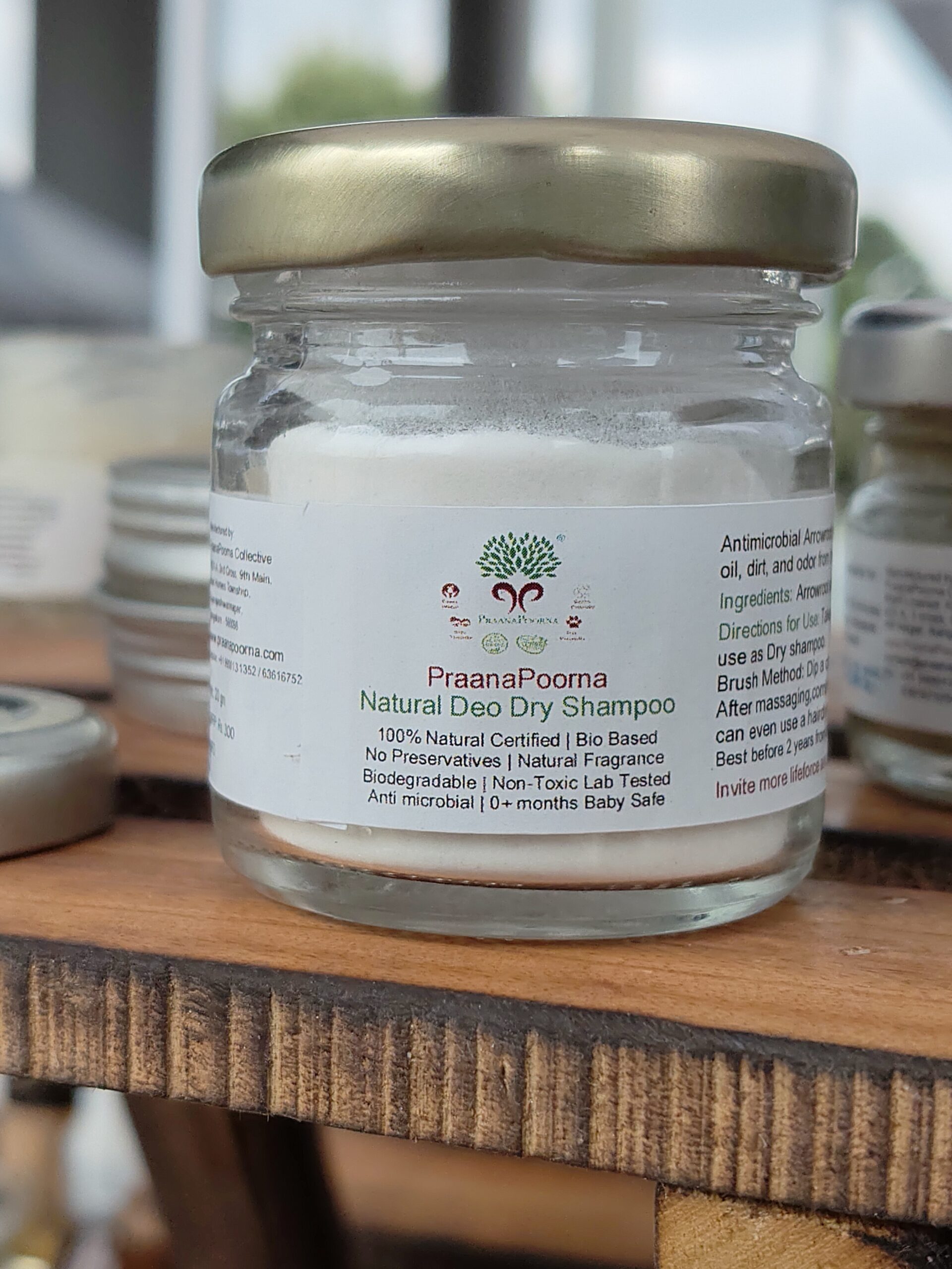 Chemical-free dry shampoo powder provides a convenient solution for refreshing hair between washes. Arrowroot powder swiftly absorbs excess oil from the scalp, ensuring a clean appearance while essential oils provide natural deodorization. Can be used as underarm deodorant.