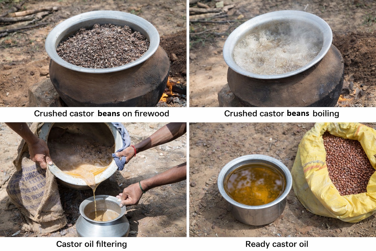 ● TRADITIONALLY EXTRACTED:Prepared in traditional way of roasting castor beans and boiling crushed castor seeds with water.This process preserve its rich nutrients and therapeutic properties.